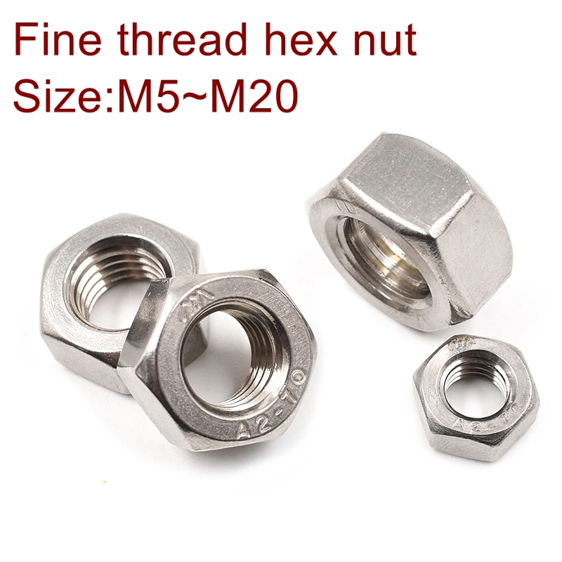 DIN934 Тонкая нить гайка из нержавеющей стали A2 sus 304 M6 * 0.75, M8 * 1.0, m10 * 1.0/1.25, M12 * 1.0/1.25/1.5, M14 * 1.5, m16 * 1.5, M20 * 1.5