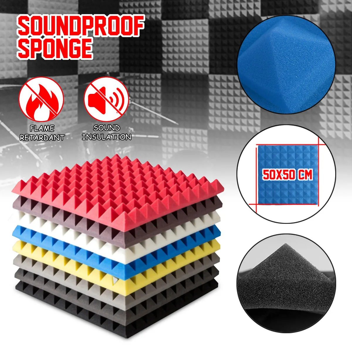 6 шт. пена для звукоизоляции акустическая пена регулирование звука поглощение клиновидной плитки полиуретановая пена 500x500 мм шумоизоляцион...