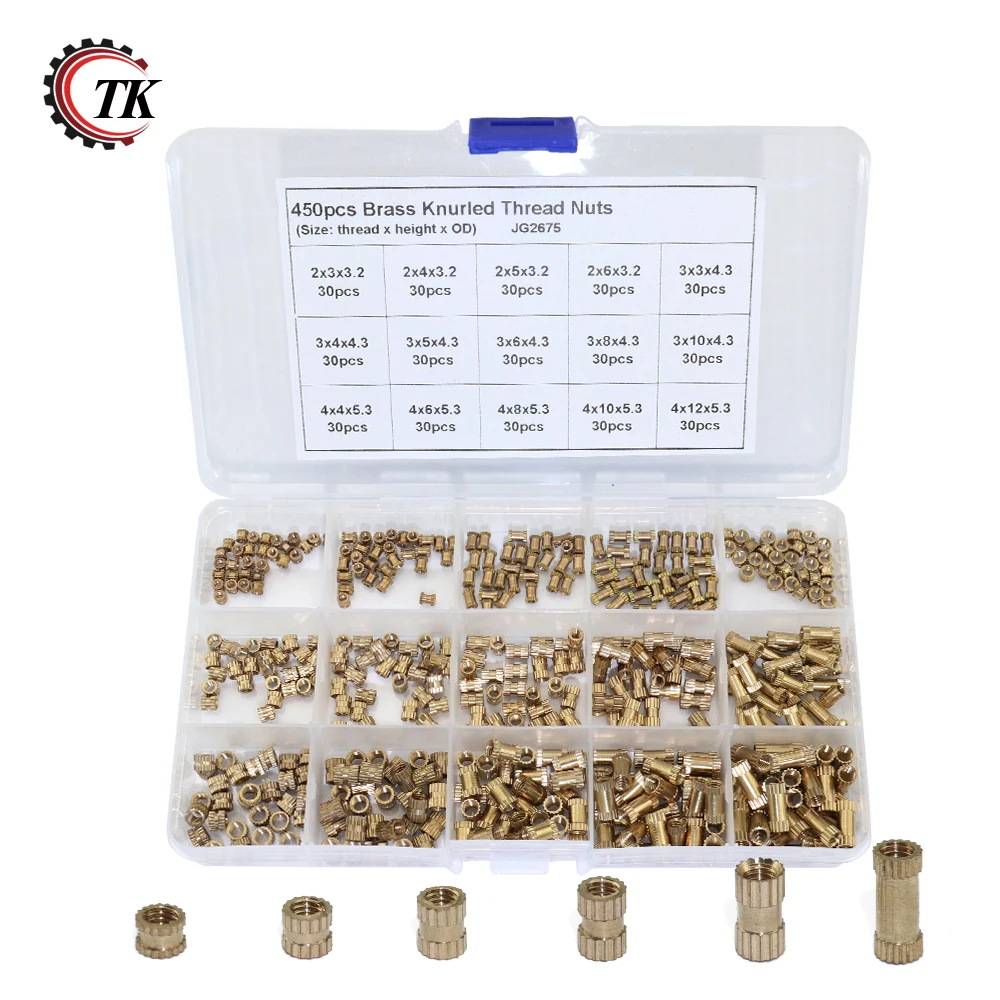Transkoot 450 шт. M2 M3 M4 Наборы латунь инъекций гайка Медь вставить гайки с накаткой Накидная гайка