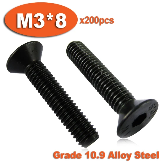 200 шт. DIN7991 M3 x 8 Класс 10,9 сплав Сталь винт с шестигранной головкой с потайной головкой с шестигранной головкой Винты со шляпкой