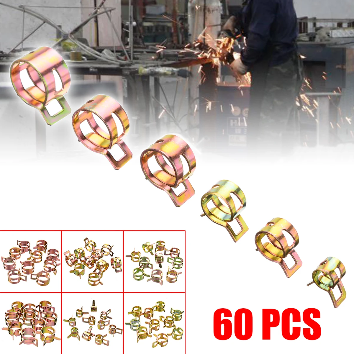 60 шт. Пружинные хомуты клип 7 мм/10 мм/11 мм/14 мм/16 мм/17 мм эластичный Топливопровод шланг зажимы бензин зажимы комплект