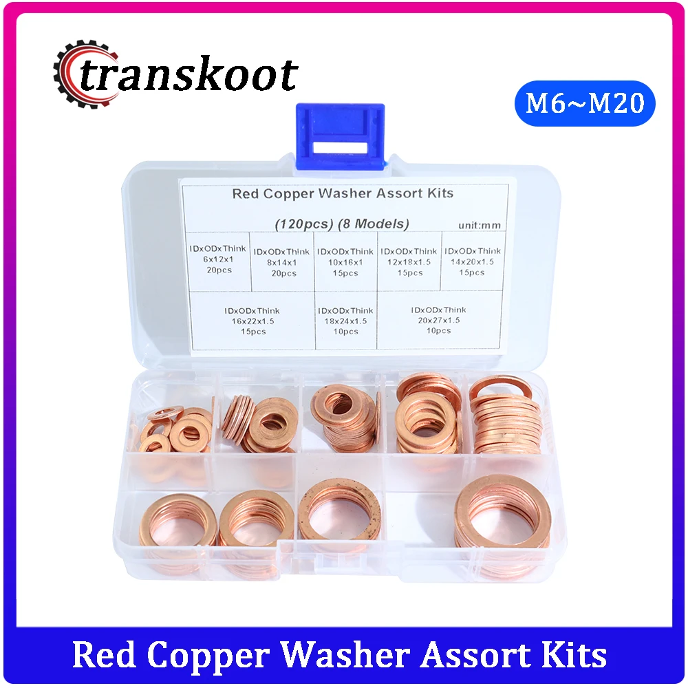 Шт. 120 шт. красный медь латунь прокладки ассортимент плоские прижимные шайбы уплотнительное кольцо набор с коробкой для Аппаратные средства