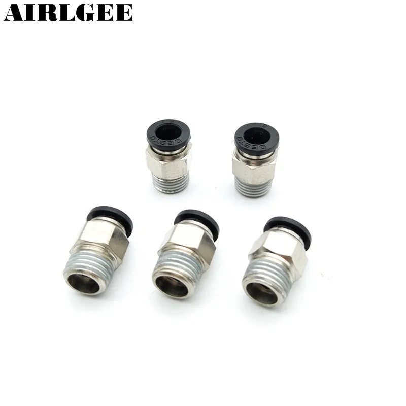 5 шт. 1/4 "PT Мужской Нитки 8 мм Push In совместных Пневматические разъем релиз быстрый монтаж черный