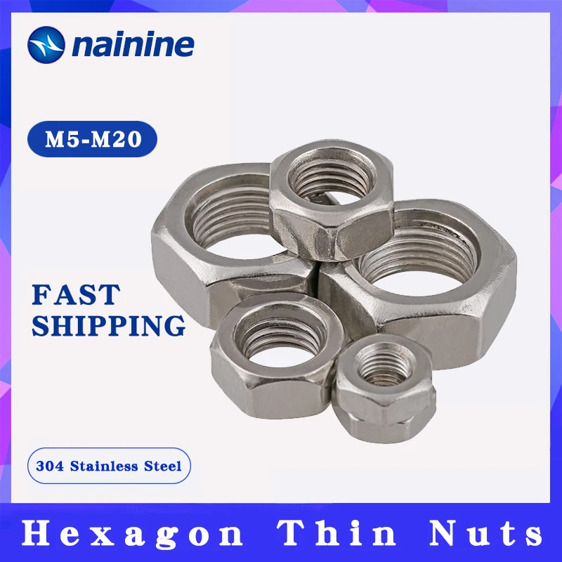 5/10/20 шт. M5 M6 M8 M10 M12 M16 304 Нержавеющая сталь шестигранные гайки тонкая HW268