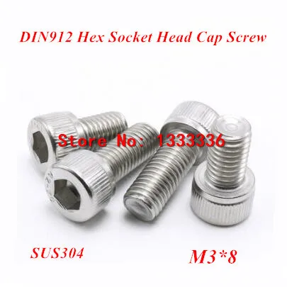 500 шт. M3 * 8 винты с шестигранной головкой, DIN912 304 нержавеющая сталь шестигранник Аллен Болт цилиндра, чашка, винты