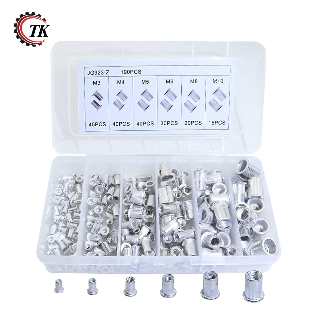 190 шт Алюминий сплав Rivnut с плоской головкой с резьбой вставить Кепки M3 M4 M5 M6 M8 M10 заклепки, гайки