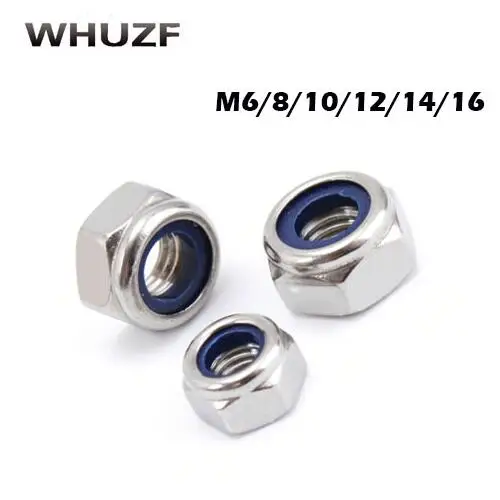 50 шт DIN985 M6 M8 M10 M12 M14 M16 304 Нержавеющая сталь вставка Стопорная орехи A2 Шестигранная гайка найлок себя Зажимная гайка