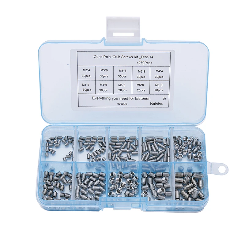 270 шт./компл. M3 M4 M5 смешивания DIN914 304 Нержавеющая сталь головок винтов коническая насадка шестиугольник Шестигранная комплект винтов HW005