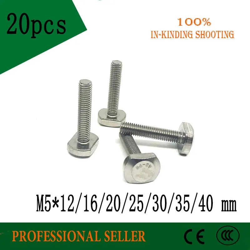 20 шт. M5 * 12/16/20/25/30/35/40 мм 304 Нержавеющая сталь метрика нить T Тип молота винт, болт, Крепеж t винты
