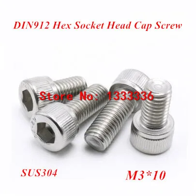500 шт. M3 * 10 с шестигранной головкой, DIN912 304 Нержавеющая сталь шестигранный цилиндр болт, чашка винты