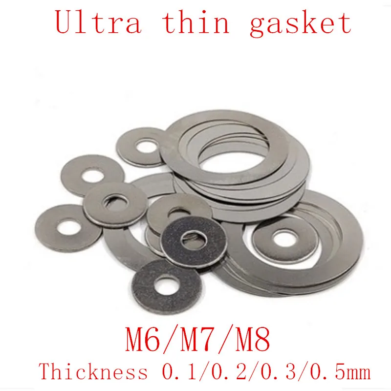 100 шт./лот M6 M7 M8 плоская шайба из нержавеющей стали ультратонкая прокладка ультра-тонкая Шима толщина 0,1 0,2 0,3 0,5 1