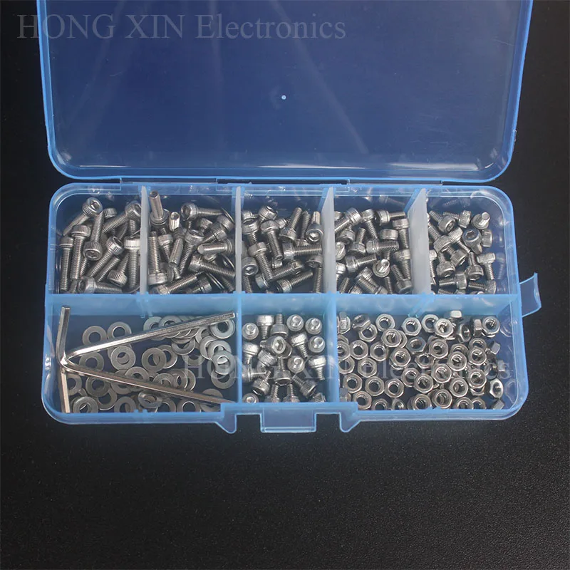 250 шт./компл. DIN912 M2 M2.5 M3 304 Нержавеющая сталь с шестигранной головкой Кепки винты велосипедов с шестигранной головкой ассортимент комплект с ...