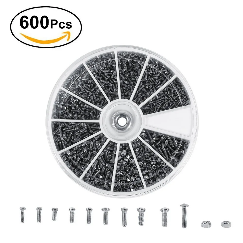 600 шт. 12 видов небольших винтов гайки ремонт инструмент аксессуар ассортимент гайка и болт Ассортимент Комплект для часы Glassess electron