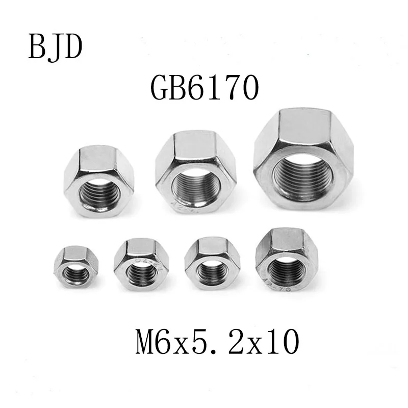 50 шт. M6x5.2x10 6 мм гайка GB6170 4,8 класса Стопорная сталь метрическая резьба Шестигранная гайка гайки замок винт толстый орех