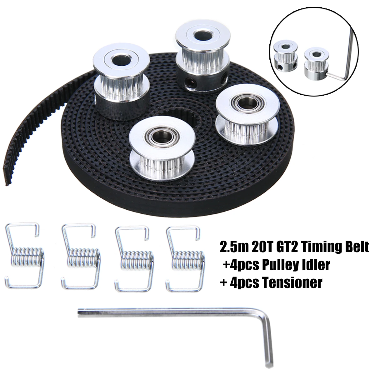 2 шт. 20 т GT2 шкив + 2,5 м синхронизации ремень + 2 шт. колеса + 4 шт. Натяжитель с ключ для 3D-принтеры
