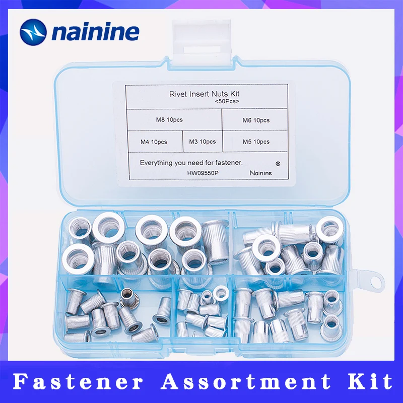 50 шт./кор. M3 M4 M5 M6 M8 Алюминий сплав Rivnut с плоской головкой с резьбой заклепки вставная закладная гайка шляпка с заклепками набор гаек комплект...