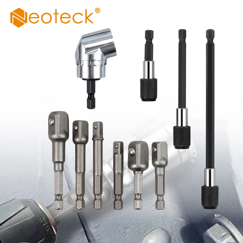 Neoteck 6 шт. гнездо адаптера ударный шестигранный хвостовик сверла бар набор 1/4 "3/8" 1/2 "Биты + 1 шт. 105 ° 1/4" правая угловая дрель адаптер