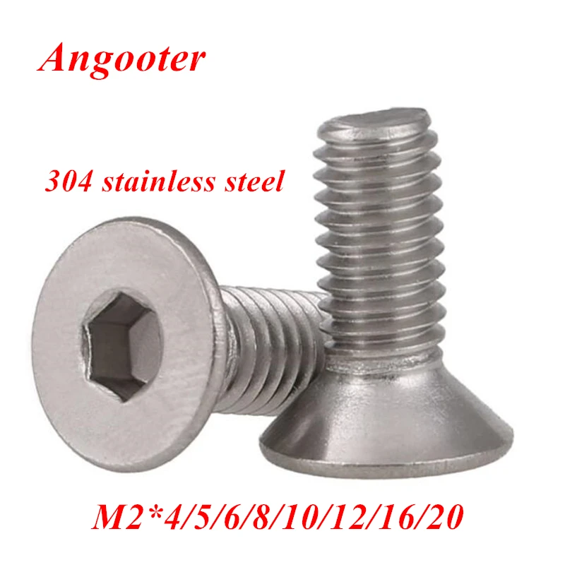 100 шт. M2 A2-70 нержавеющая сталь 304 Шестигранная головка под ключ плоской потайной шестигранный болт M2 * 4/5/6/8/10/12/14/16/18/20 мм