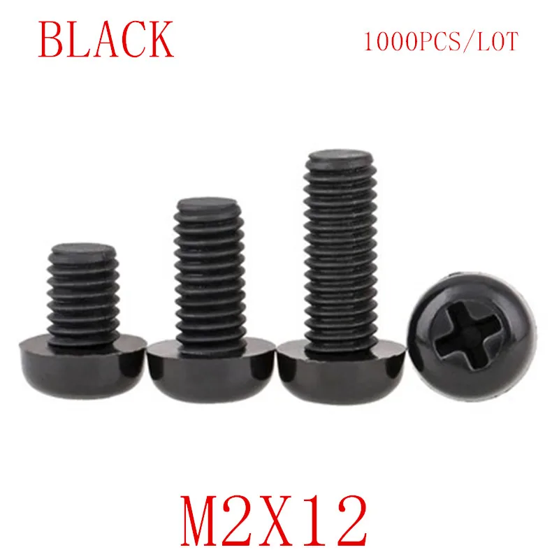 1000 шт. оптовая продажа M2 * 12 M2x12 черный нейлон пластик Круглый головкой винт