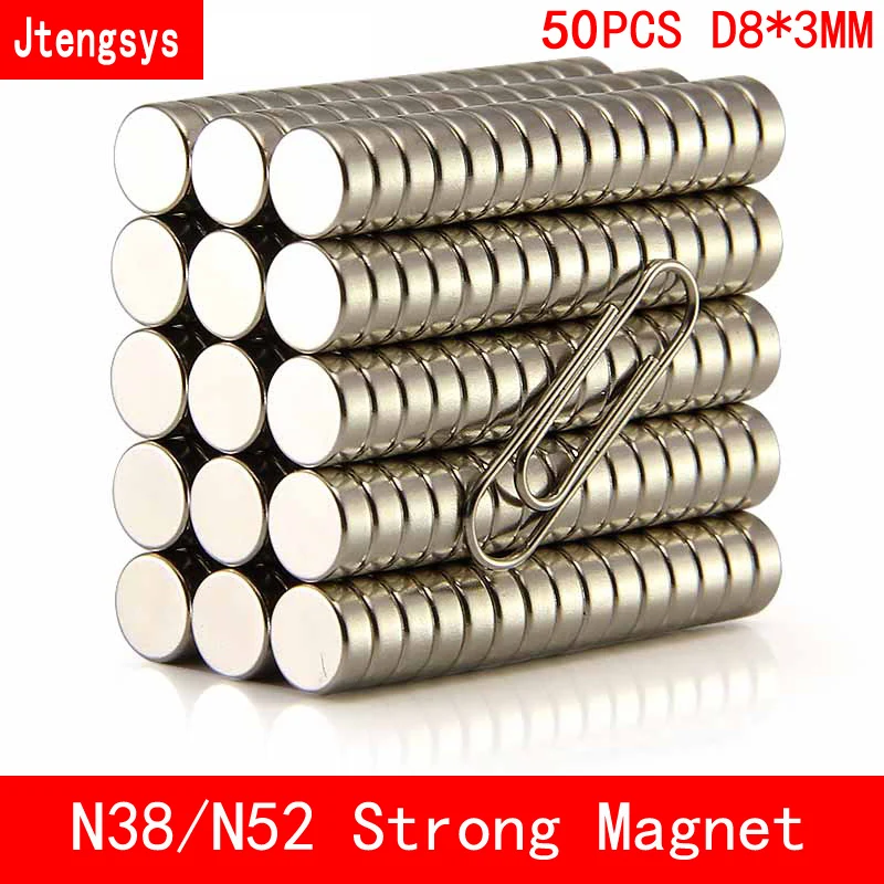 Jtengsys 50 шт. n38 n52 неодимовый магнит 8х3 редкоземельный небольшой Сильный Круглый постоянный 8*3 мм пластина для холодильника никелированный Магнитный Диск