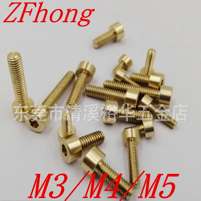 20 шт./лот DIN912 M3 M4 * 6/8/10/12/14/16/18 медный шестигранник Шестигранная Кепки головной Аллен болт