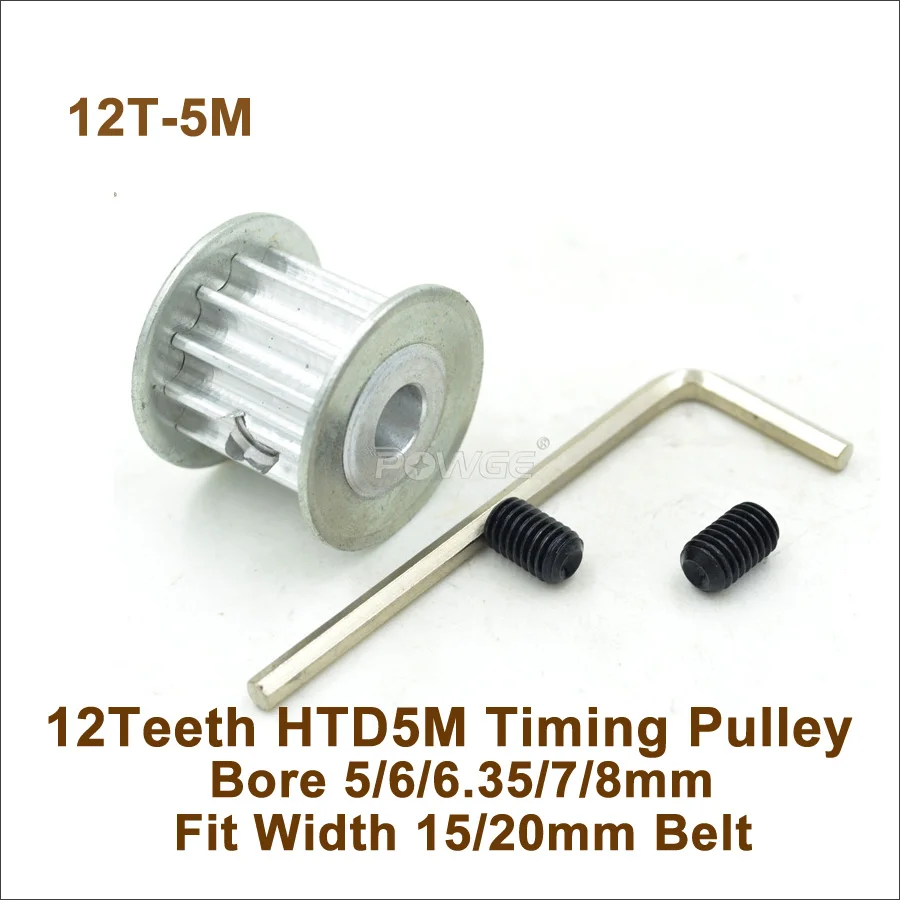 POWGE 12 зубов 5 м Синхронный шкив Диаметр 5/6/6,35/7/8 мм подходят Ширина 15/20 мм 5 м зубчатый ремень для детей возрастом 12 лет 12 Зубы HTD 5 м зубчатый шкив