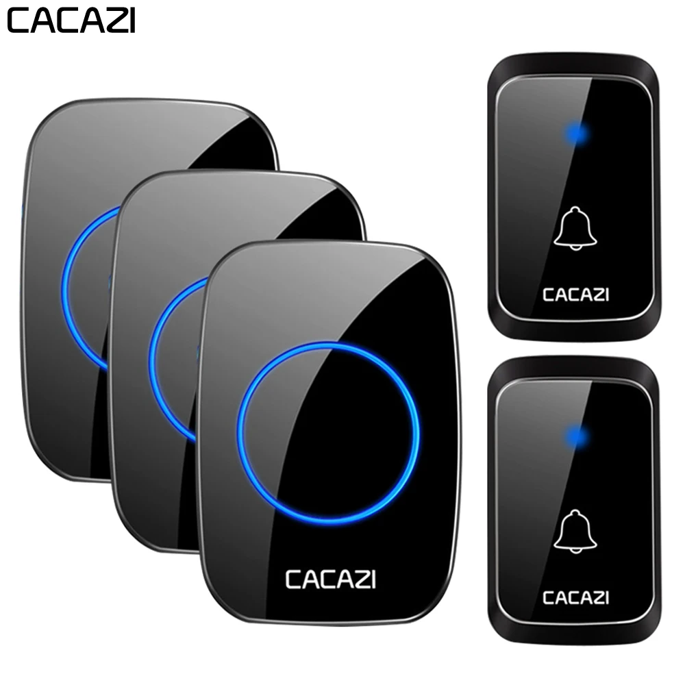Беспроводной водонепроницаемый дверной звонок CACAZI, светодиодный беспроводной дверной звонок, 220 дБ