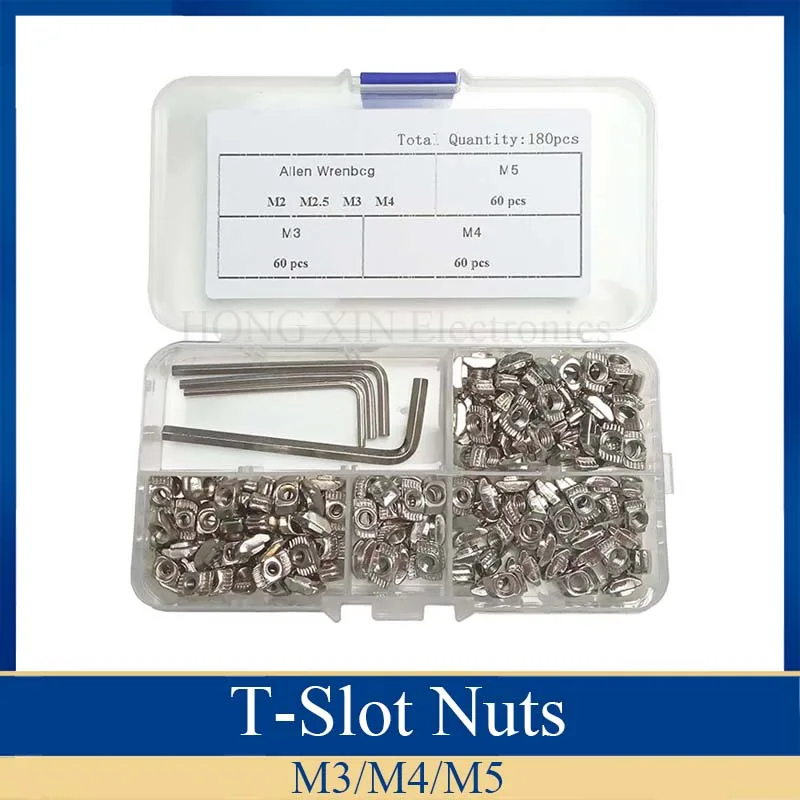 180 шт./компл. M3/M4/M5 никелированная углеродистая сталь Т молоток гайки Ассортимент комплектов соединитель т застежка раздвижная гайка