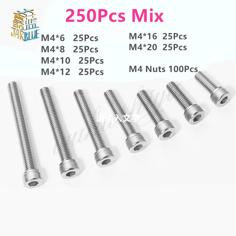 250 шт M4 шурупов набор гаек Нержавеющая сталь болты с шестигранной муфтой винты с набор болтов в ассортименте Деревообрабатывающие инструме...