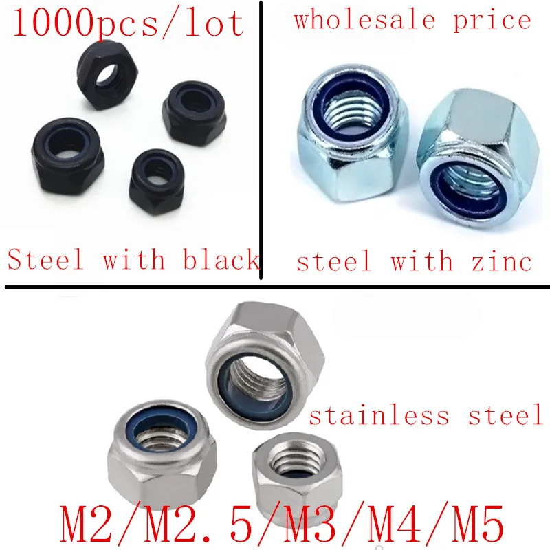 1000 шт. DIN985 M2 M2.5 M3 M4 M5 M6 нержавеющая сталь, сталь с черный или белый цинковый нейлон замок Резьбовая муфта гайки