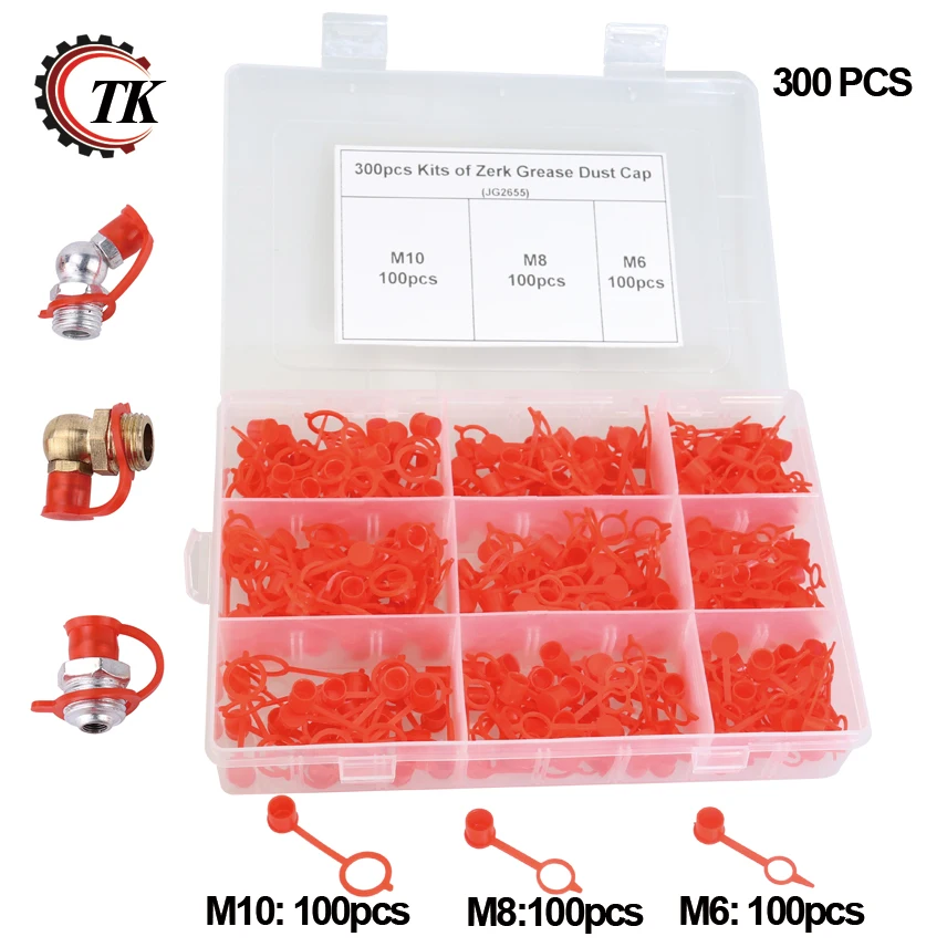 300 шт. M6 M8 M10 красный полиэтилен Пластик Защитная крышка от пыли Чехол ассортимент Наборы для Смазка пистолет смазочный фитинг