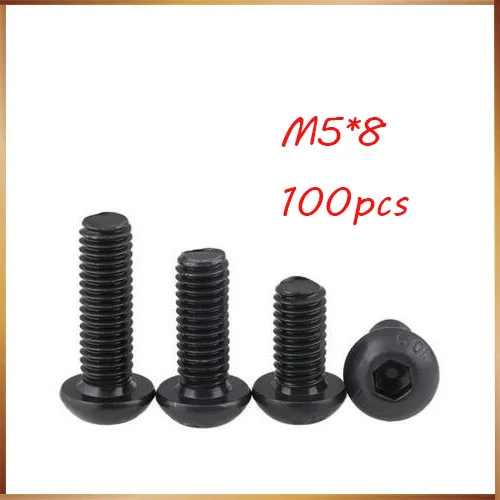 Бесплатная доставка 100 шт. M5x8 мм M5 * 8 мм юаней чашка полукруглой головкой черный оценка 10,9 углерода сталь с шестигранной головкой Кепки винт