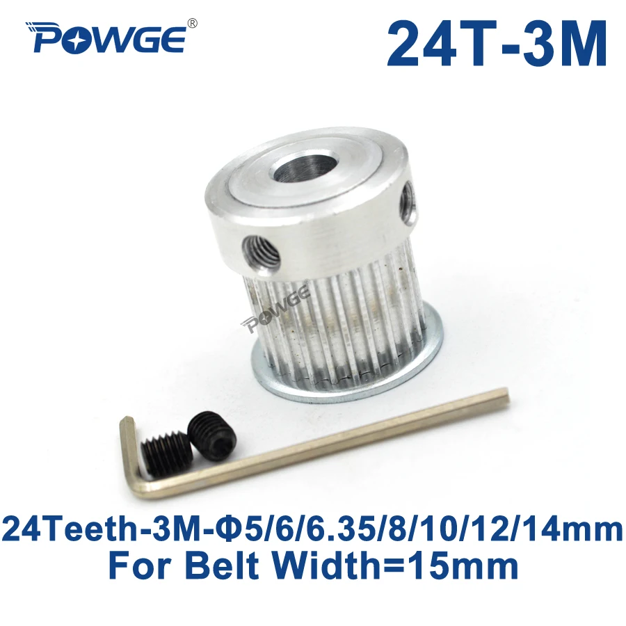 POWGE 1 шт. 24 зубы HTD 3 м Сроки ролик Диаметр 5/6/6,35/8/10 /12/14 мм для Ширина 15 мм 3 м Синхронный ремень HTD3M шкив 24 зубы 24 т