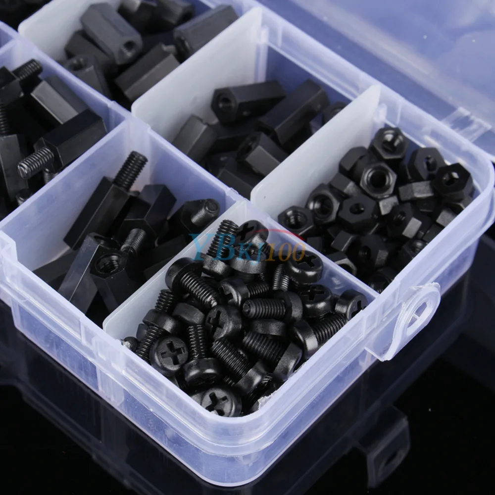 ГОРЯЧАЯ 300 шт./компл. M3 нейлон черный винт гайка Распорки Стенд-офф Комплект крепежа с коробкой