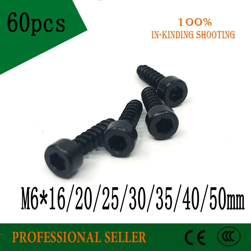 60 шт. M6 * 16/20/25/30/35/40/50/60 мм углеродного Сталь с черный с шестигранной Кепки головы саморез модель M6 винт