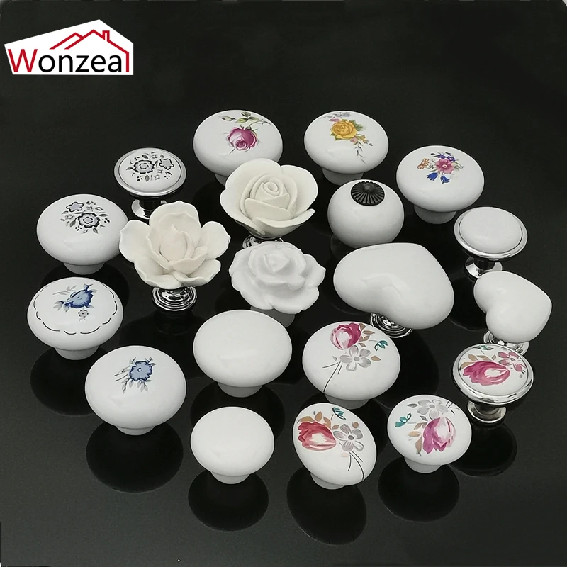 Белый цвет розы lotus любовь простой керамический с одним отверстием ручка Кухня ручка для мебели ручки для выдвижных ящиков в форме сердца