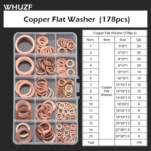 M5-M24 шт. 178 Professional Ассорти Медь шайба комплект прокладок Комплект плоское кольцо уплотнение Ассортимент Комплект с коробкой для Аппаратные с...