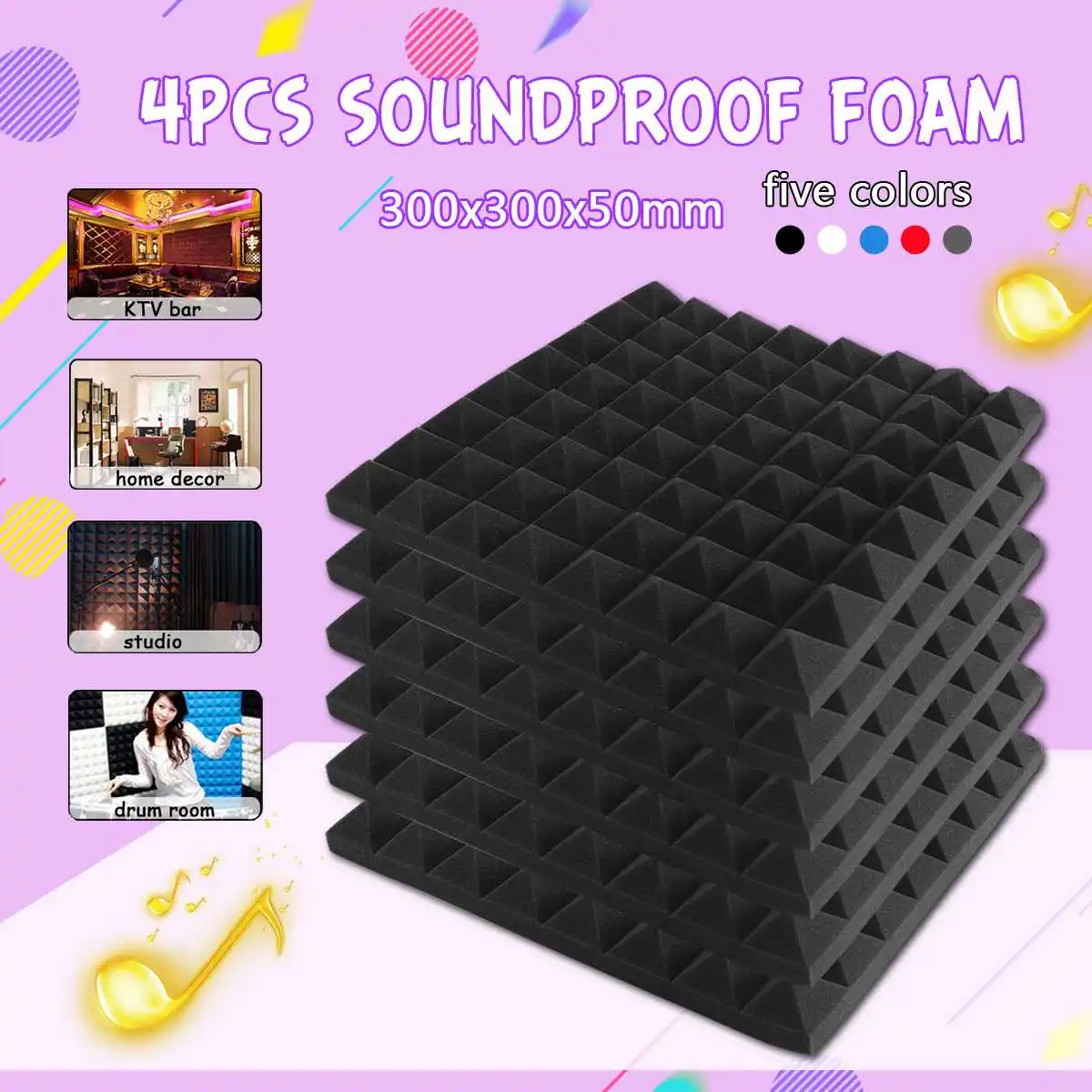 4 шт 300X300X50 мм Studio акустической Звукоизолированные пены звукопоглощение лечение облицовочная плитка Защитная полиуретановая губка