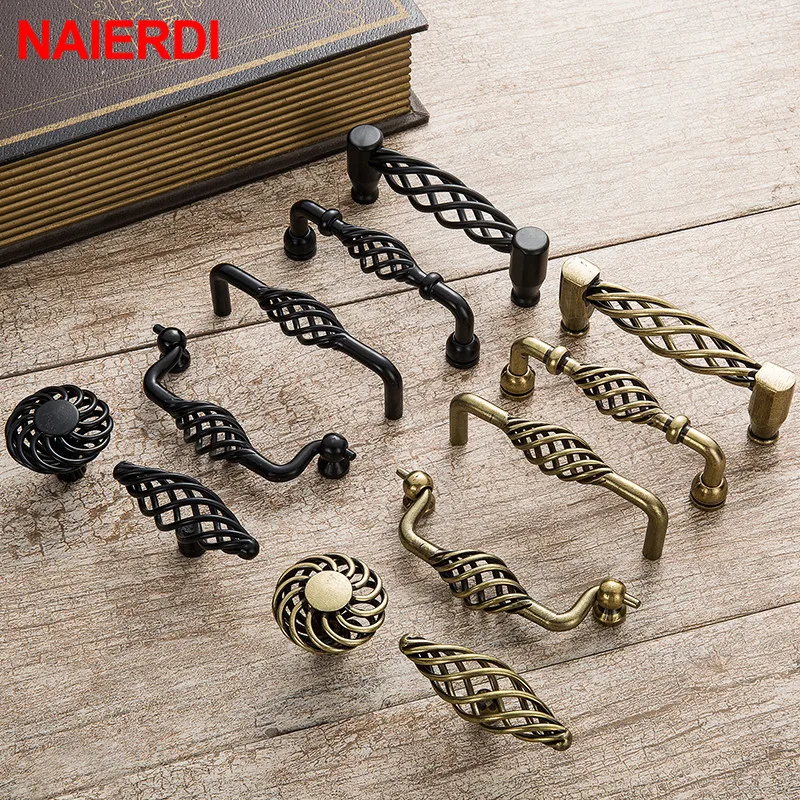 NAIERDI старинный Бронзовый Шкаф ручки выдалбливают клетка ручки ящик шкаф дверная стяжка старинная Мебельная ручка