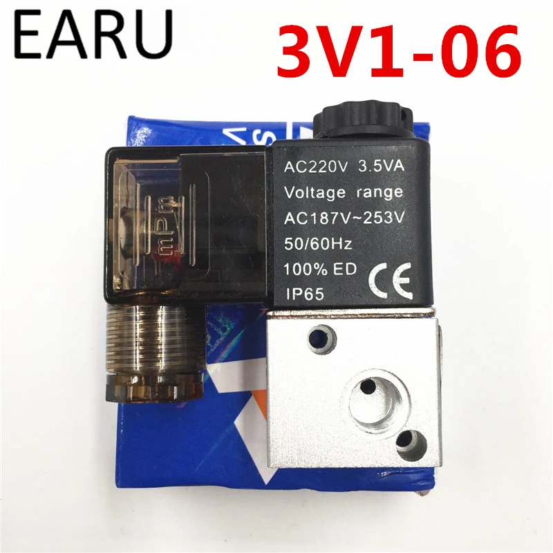 1 шт. 3V1-06 2 позиции 3 ходовой пневматический Соленоидный клапан порт 1/8 "Нормально закрытый Пневматический регулирующий клапан DC 12 В 24 В AC 110 В 220 В