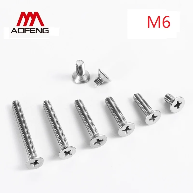 M6 304 Stianless Сталь крестообразные резьбовые винты с потайной головкой M6 X 8 10, 12, 14, 16, 18, 20, 22, 25 30 35, 40 45 50 60 707, на рост 80, 90, 100 мм
