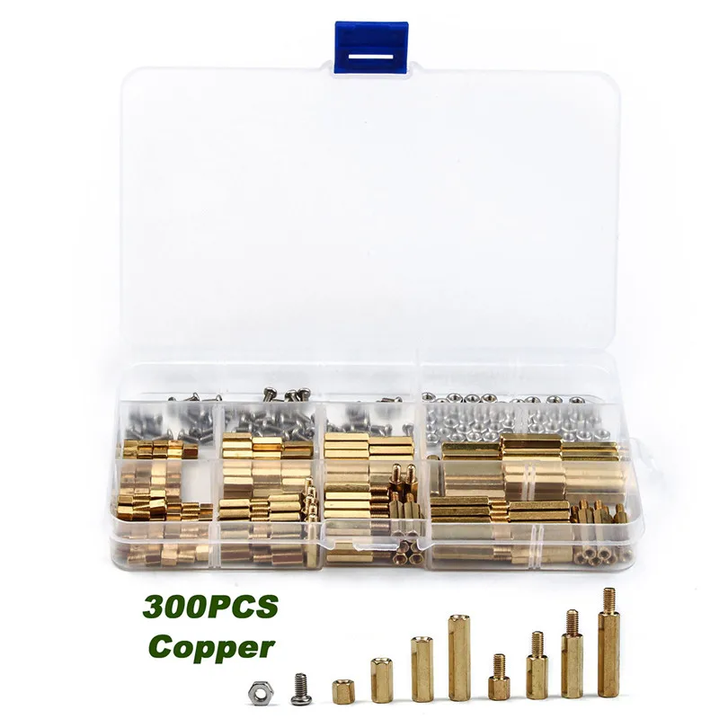 300 шт./компл. M3 латунный Медный столб стоячая Шестигранная стойка прокладка винтовая гайка и крест круглая головка винт Медный столб комплект