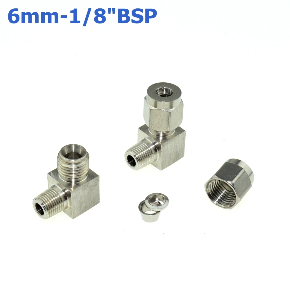 2 шт. 1/8 "BSPT мужской Нитки x 6 мм двойной наконечник трубки Сжатия Колена мужской Нитки разъем PT нержавеющая сталь 304