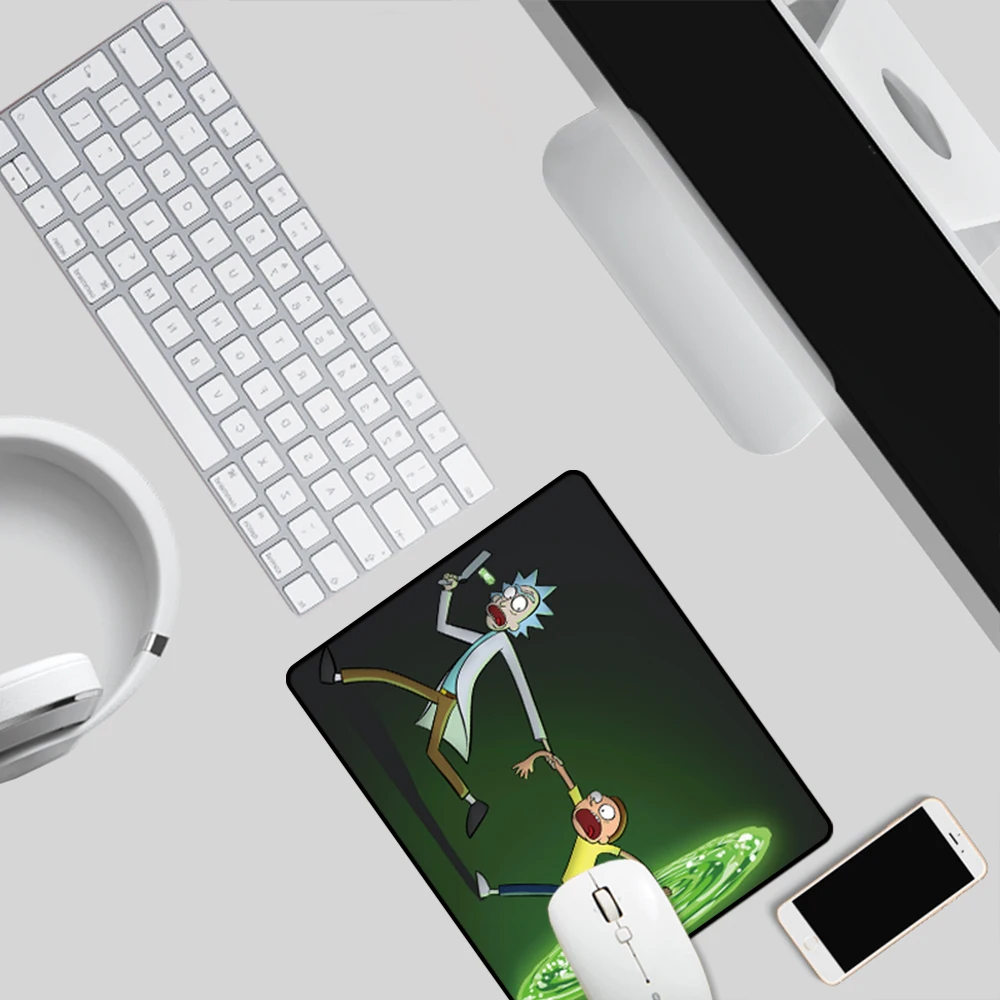Коврик для мыши в стиле аниме Рик и Морти из мультфильма резиновый маленький компьютерный игровой коврик с блокировкой края скорости игров...