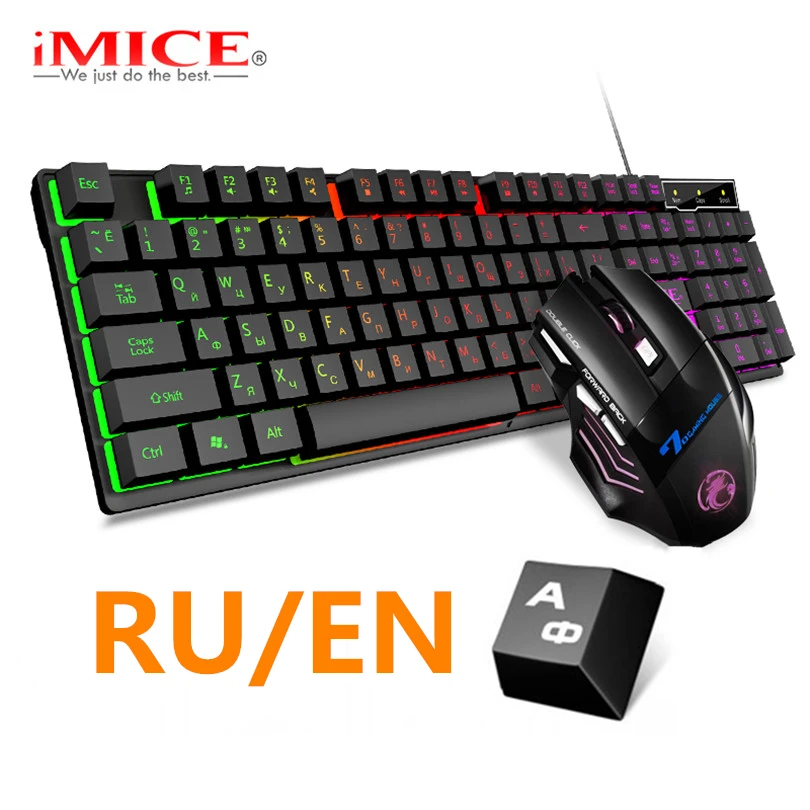 T5 Радуга Подсветка USB клавиатура 104 клавиши эргономичная игровая английская русская клавиатура и мышь набор для ПК ноутбука с коврик для мыши