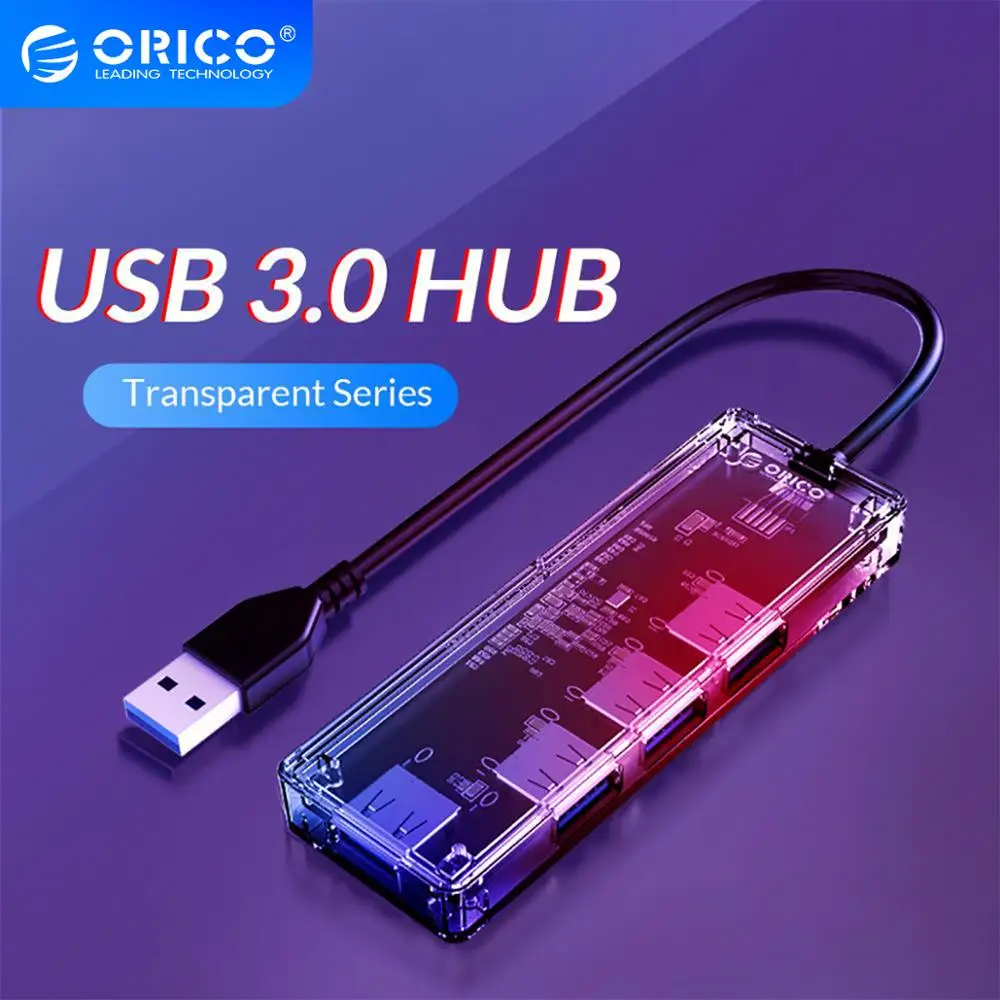 Прозрачный usb-хаб ORICO, мультивысокоскоростной сплиттер USB 3,0, 4 порта, OTG карта, адаптер для чтения, аксессуары для настольного ПК, ноутбука