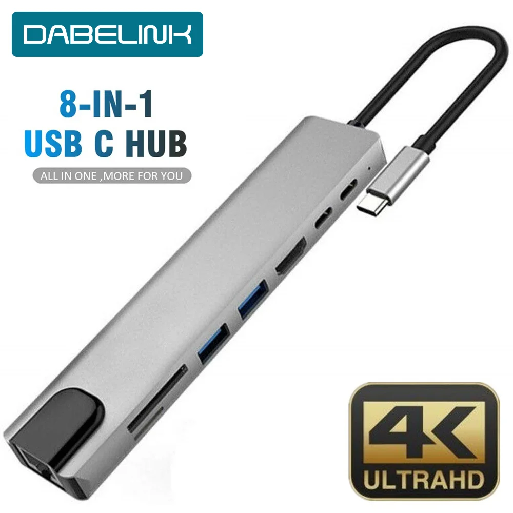8-в-1 Тип C концентратор USB кабель-Переходник USB C на HDMI USB 3,0 Порты USB 2,0 Порты и разъёмы SD/устройство для считывания с tf-карт USB-C Мощность доставки...