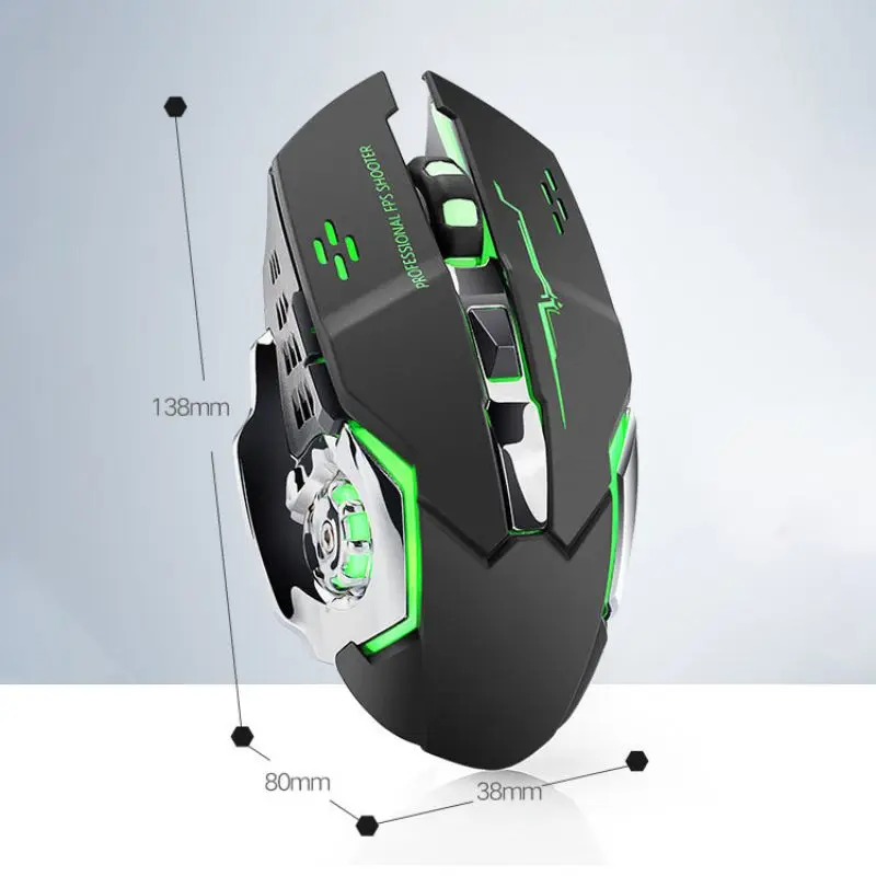 Бесшумный светодиодный подсветкой Игровые мыши Регулируемый Точек на дюйм механические Мышь 2,4G USB Беспроводной Мышь
