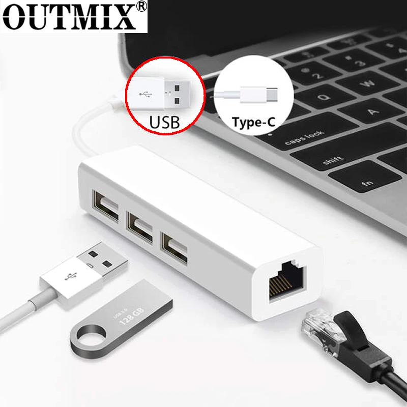 USB Ethernet с 3 портами usb-хаб 2,0 RJ45 Lan сетевая карта USB в Ethernet адаптер для Mac iOS Android PC RTL8152 USB 2,0 концентратор