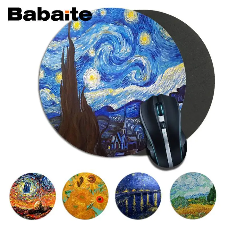Babaite Vincent Живопись Ван Гога круглый прочный резиновый коврик для мыши Размер для 22x22 см Скорость версия круглые коврики для игровой мыши